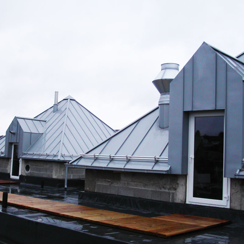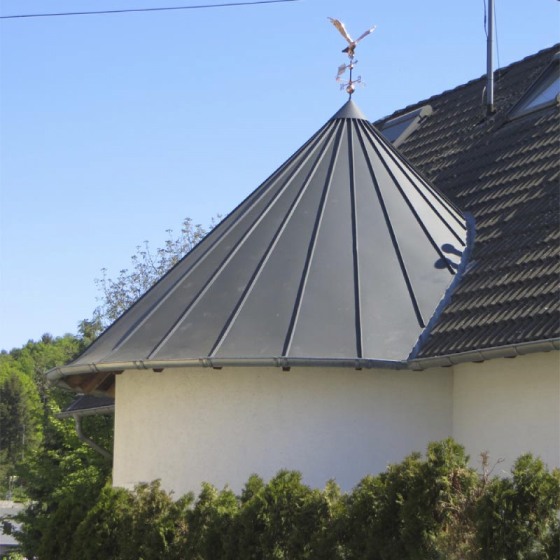 Metall ist im Dachbereich ein unverzichtbares Material. Ob in der Entwässerung, Dacheindeckung, Fassadenbekleidung oder im Anschlussbereich. Die Gestaltungsmöglichkeiten im Dach- und Fassadenbereich sind mit Bändern und Tafeln aus Zink, Kupfer, Aluminium oder Edelstahl in verschiedenen Farben und Oberflächen sehr vielseitig. Auch Sonderanfertigungen führen wir in unserem Repertoire. Als Klempnermeister kann ich Sie hier umfänglich beraten!